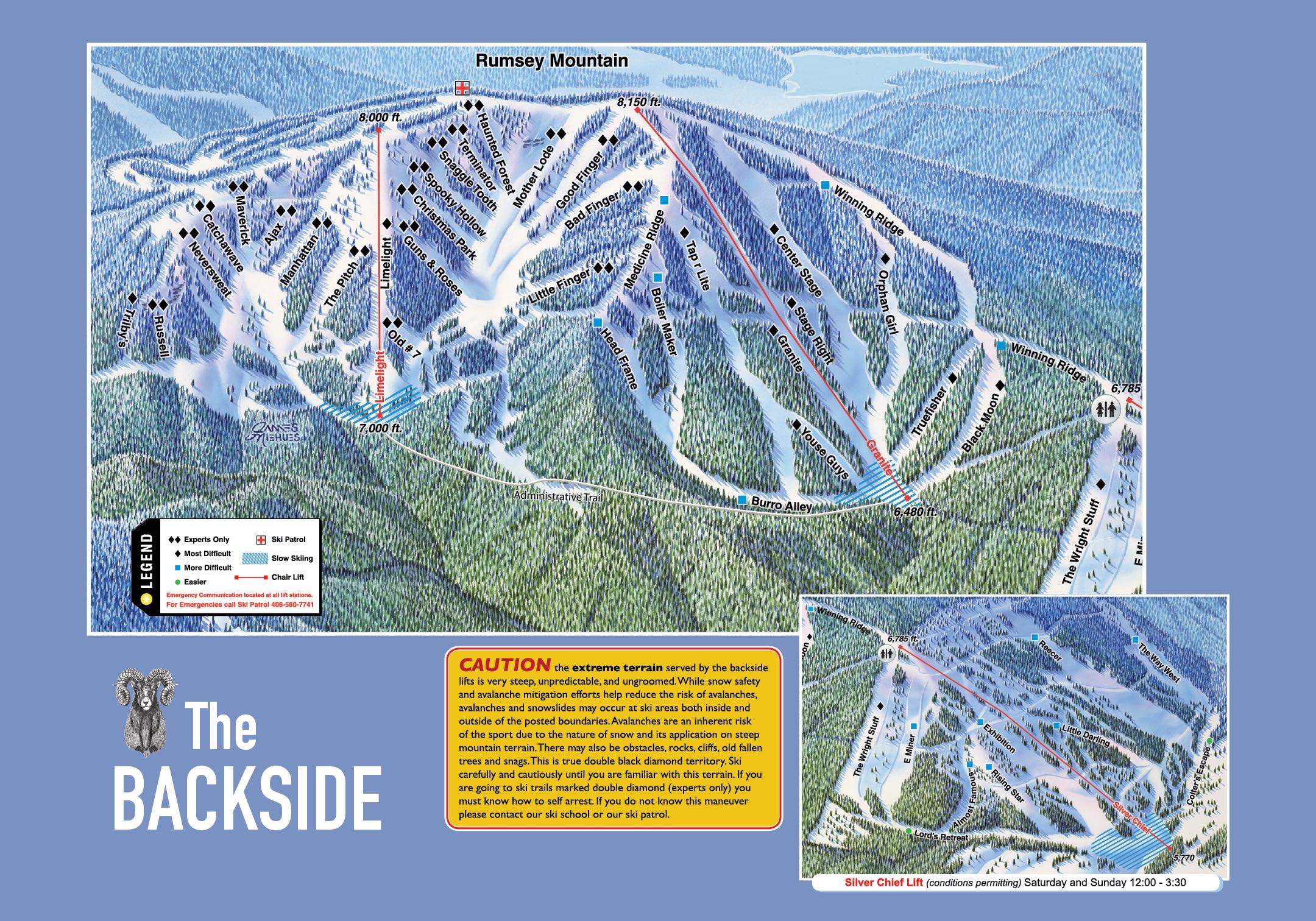 Located immediately above the day lodge, this area is completely lift served. Here, you’ll find gently sloping green runs, cruisers as wide as the Montana sky, the Pentecost Freestyle Terrain Park, and a black diamond or two just for kicks.